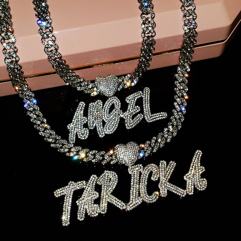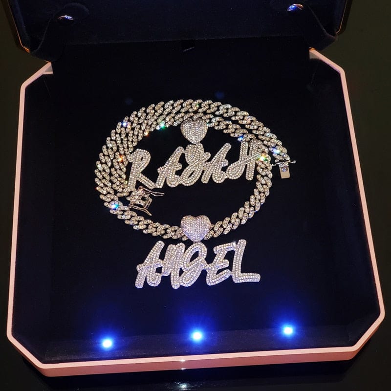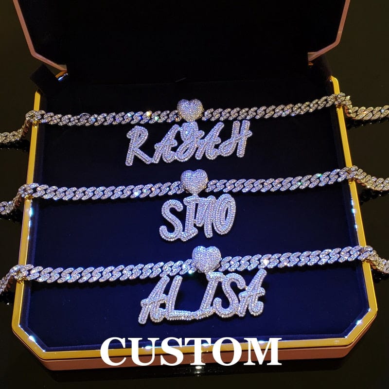 9MM Custom Heart Bail Brush Cursive Cuban Name Pendant Necklace Sale price€121,95
