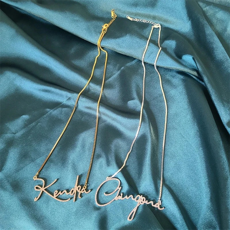 This custom diamond name necklace is made of durable stainless steel and features English letters for a personalized touch. Elevate your style with this high-quality necklace that adds a unique touch to any outfit. Perfect for gifting to a loved one or treating yourself to a special piece of jewelry.