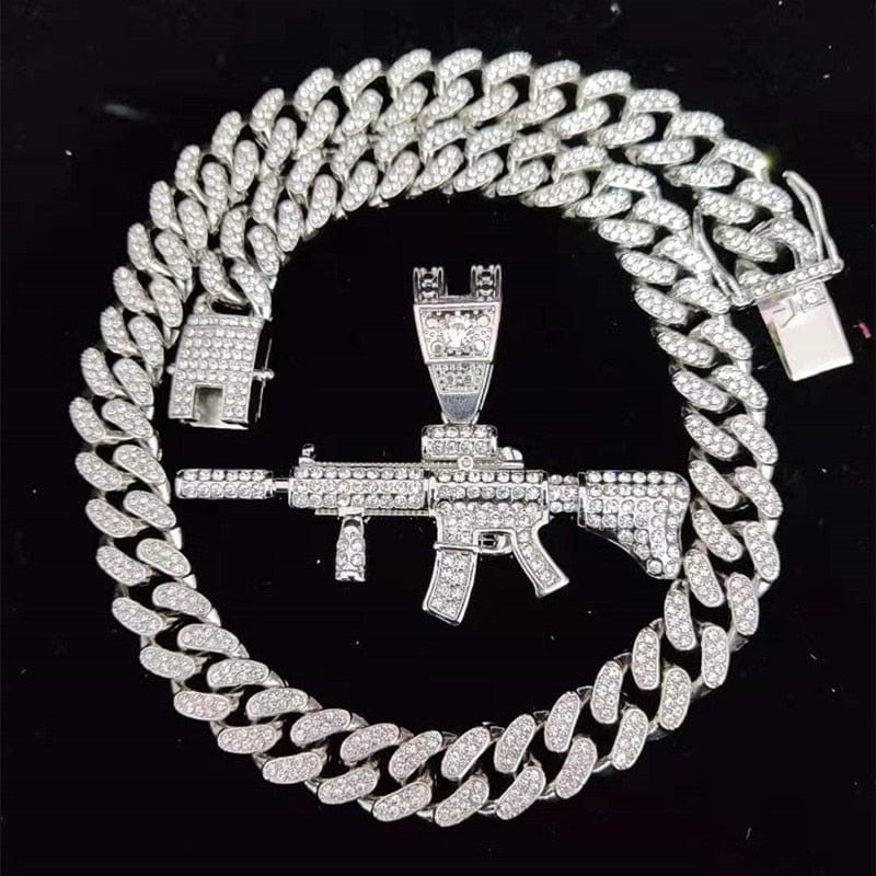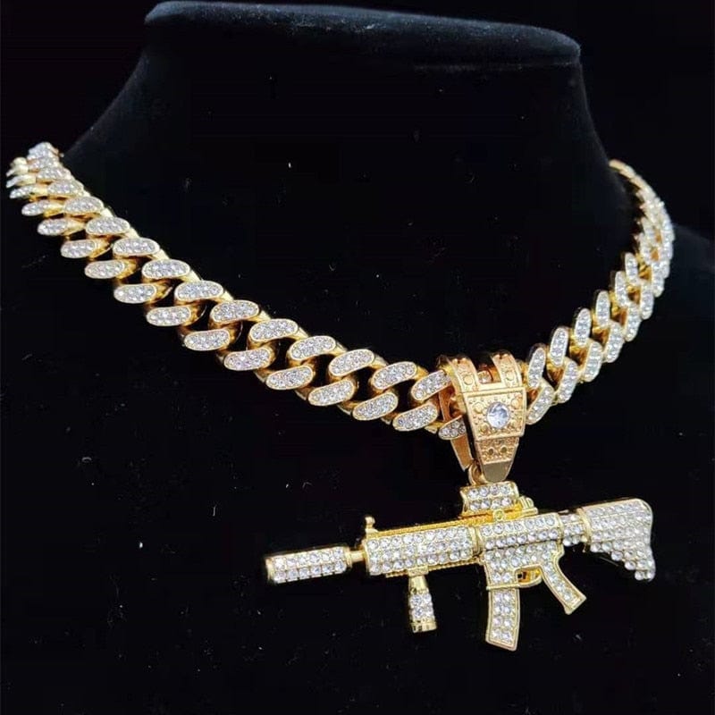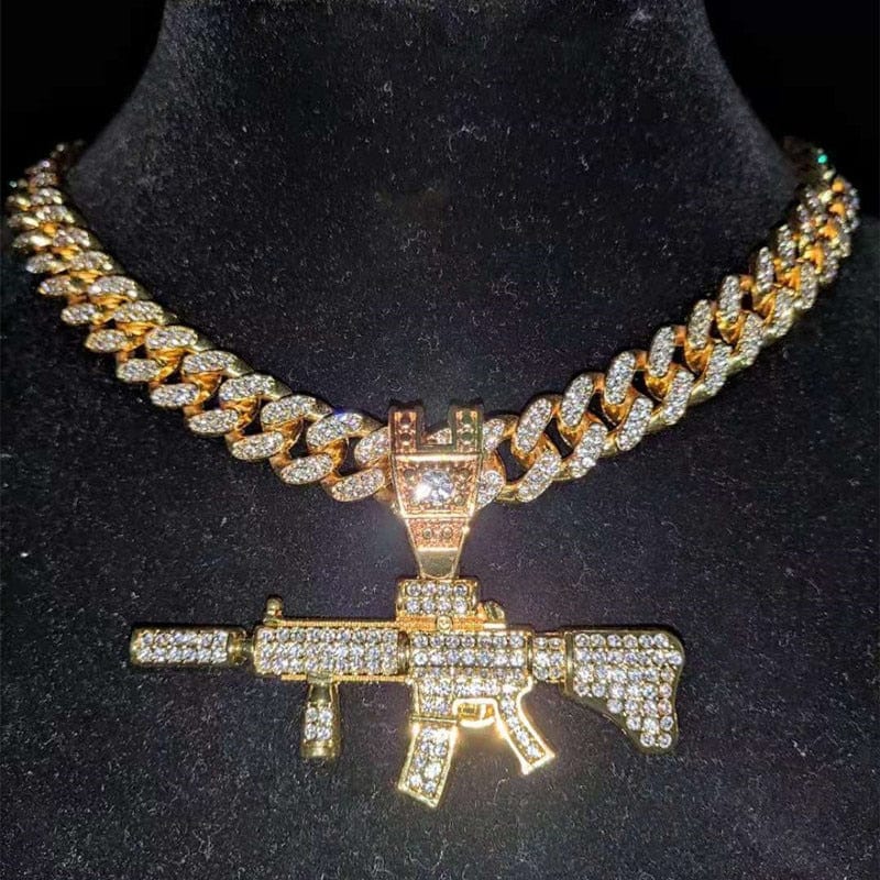 Stand out from the crowd with our hip-hop style rapper machine gun pendant charm with 13MM cuban chain!