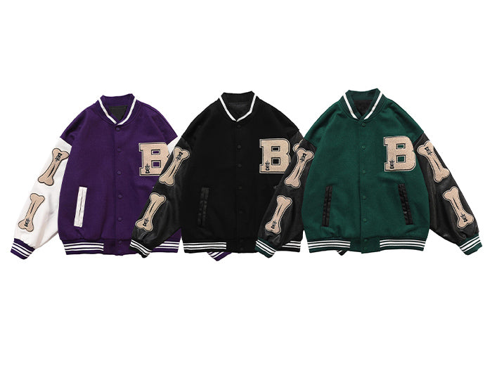 When you want to show your love for hip hop, what better place to start than with a classic piece of hip hop streetwear, the baseball jacket. In this bomber, we've taken our iconic Furry Bone patchwork and added a distinctive color-blocked front panel. Layer over a jersey or T-shirt for an authentic look that nods seriously to the sounds and styles of hip hop in a modern way.