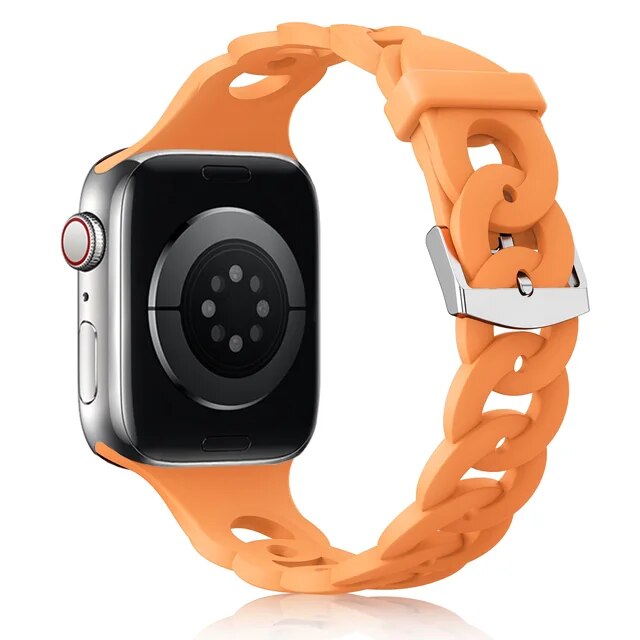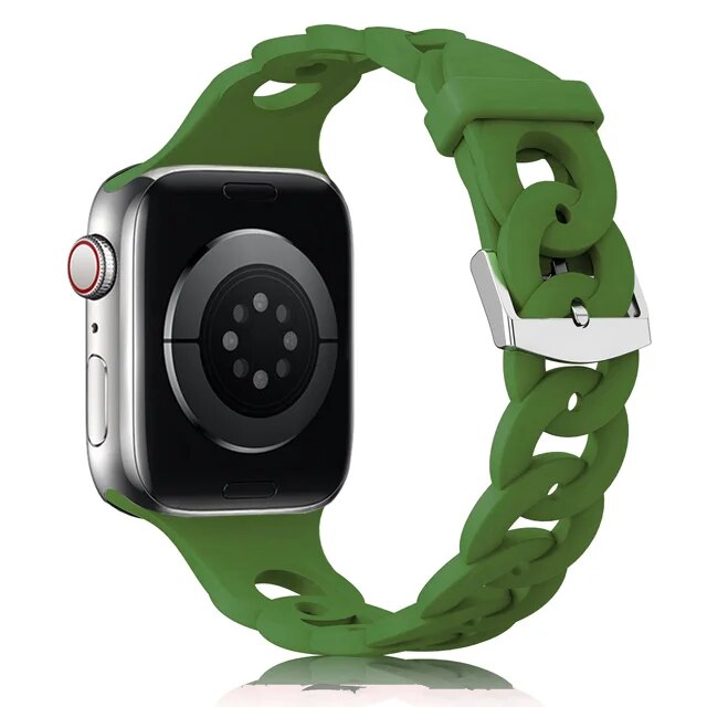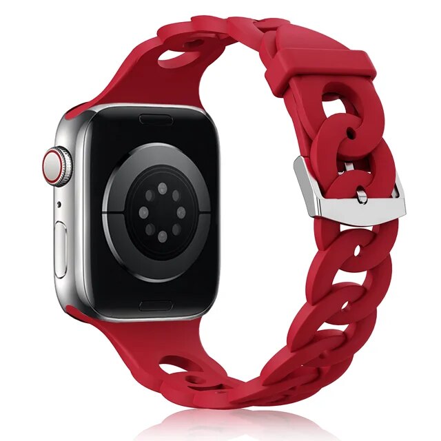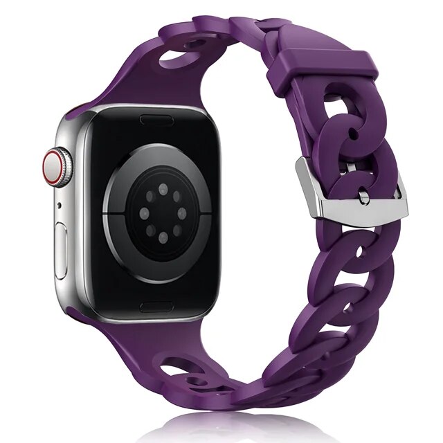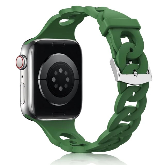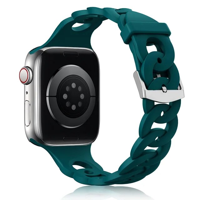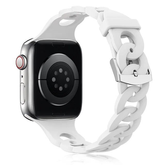 Perfect Design: Metal buckle with Gourmette Design Breathable holes easier to adjust the length, direct installation and one button removal, avoid the watch from falling off or being loose. Locks onto Apple Watch interface precisely and securely