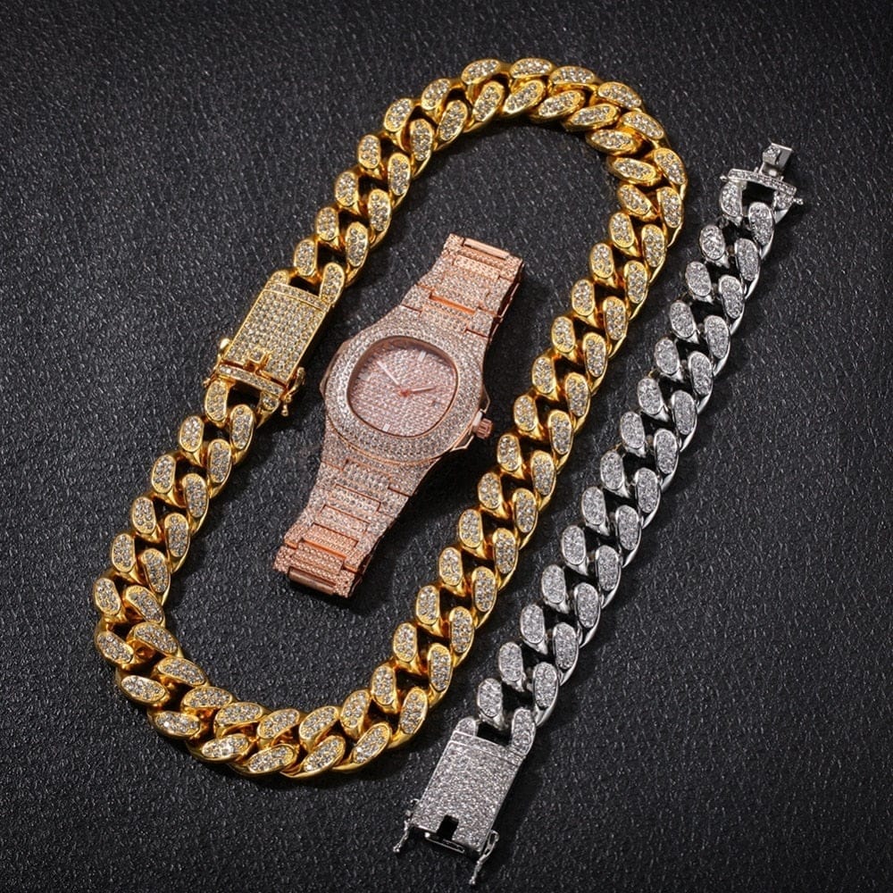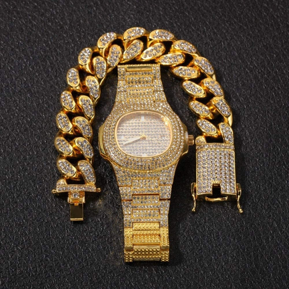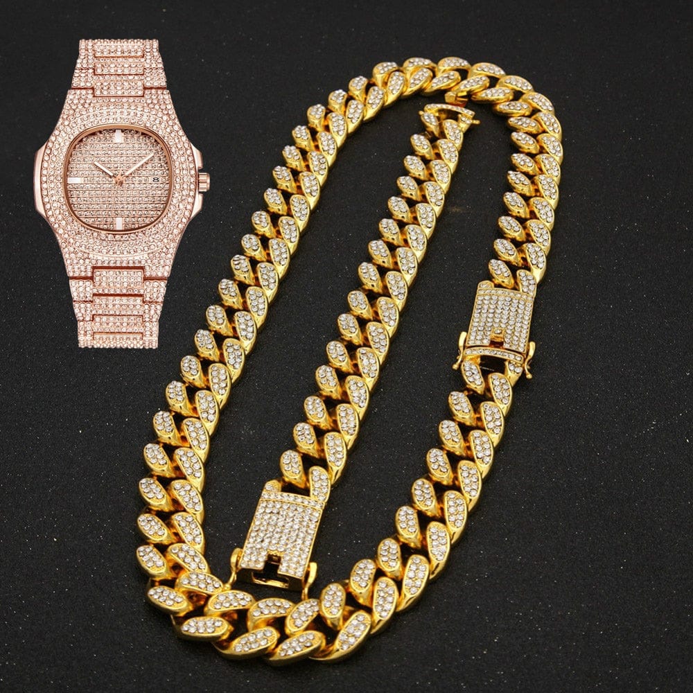 24H SALE SPECIAL - Iced 18K Gold Cuban Bundle plus FREE watch