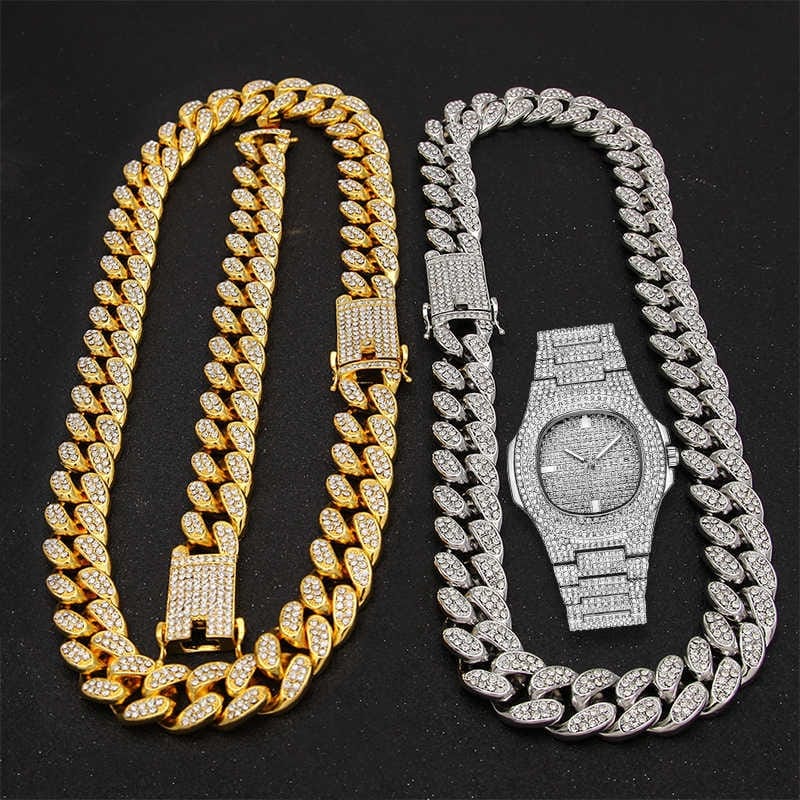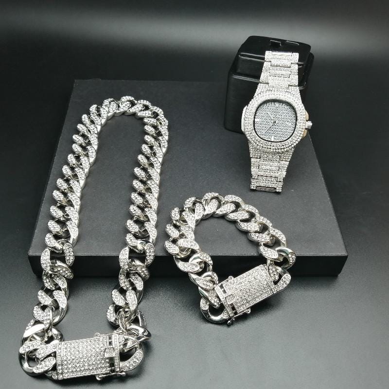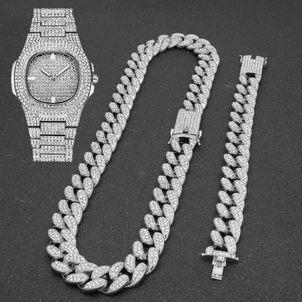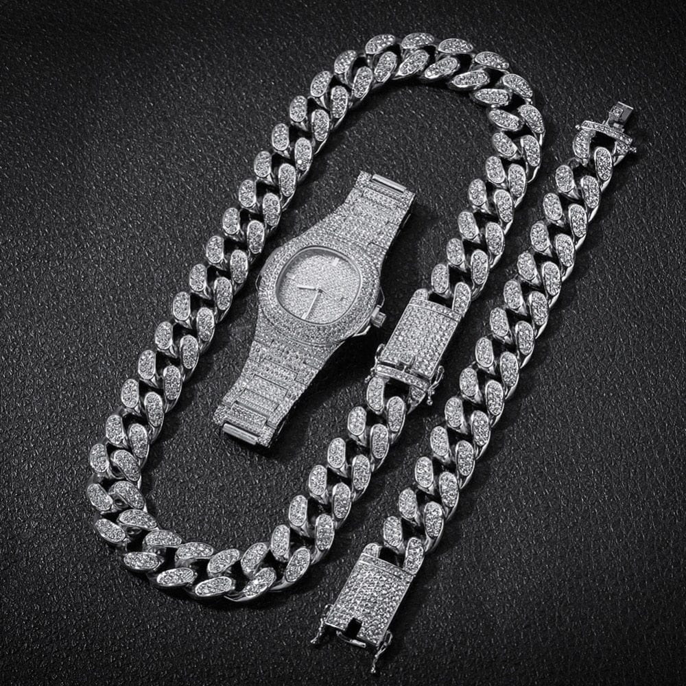 VVS Jewelry Cuban Chain & Cuban Bracelet + Free OG Bust Down Watch