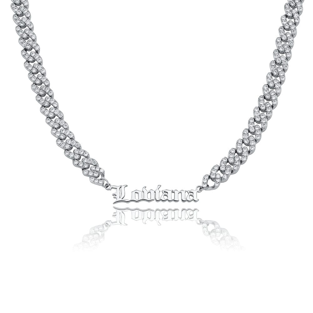 Express your unique personality with this stylish Personalized Cuban necklace. Fashioned in sterling silver, this look showcases a name or word of your choice in Old English font style.