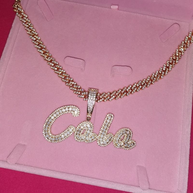 Flaunt this elegant, shining custom-made necklace. With each letter fully iced, this piece is sure to complement any fit. It is flooded with hand-set stones, to keep it shining from all angles.