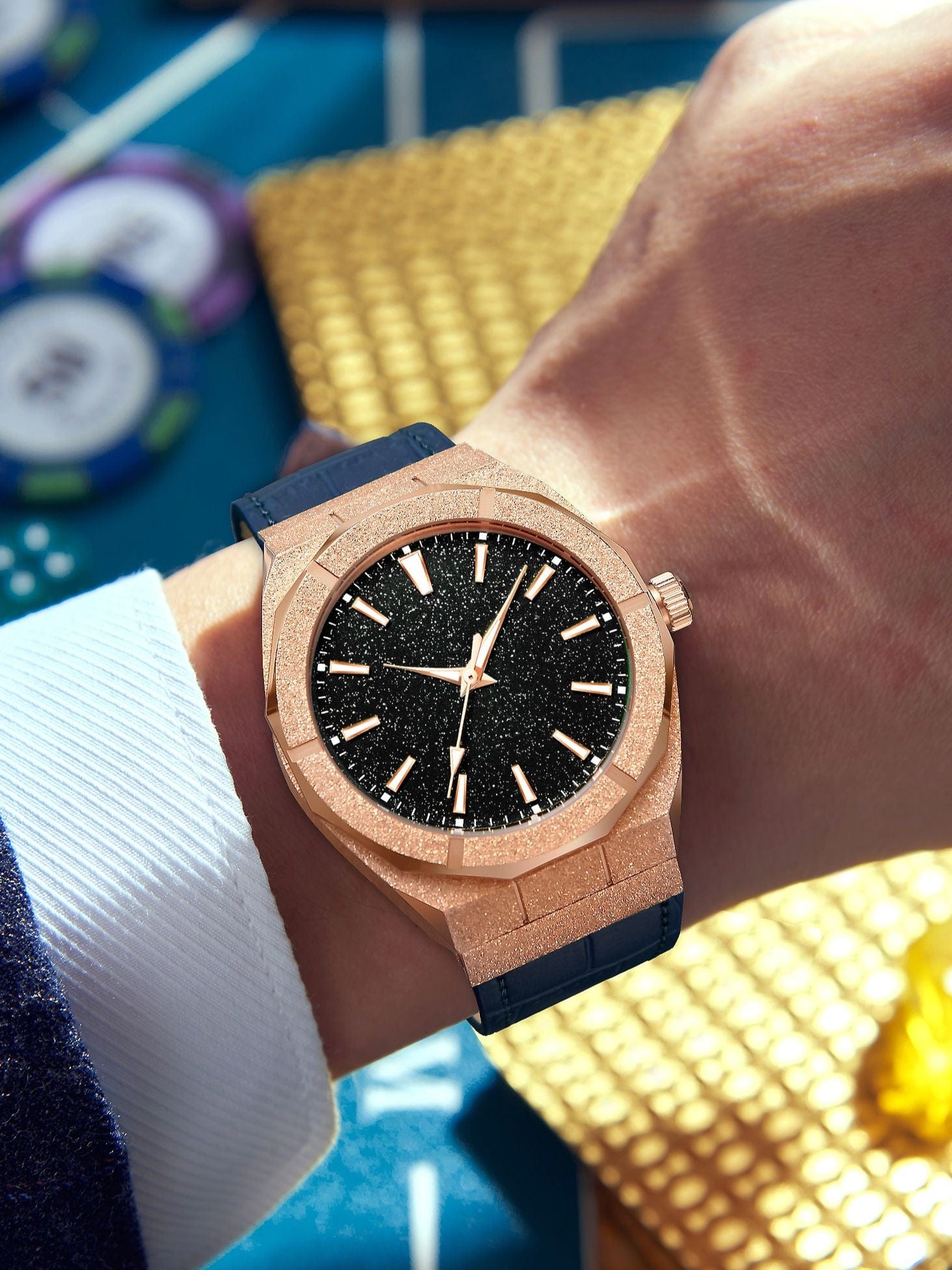 VVS Jewelry Iced Stardust Bling Leather Strap Watch