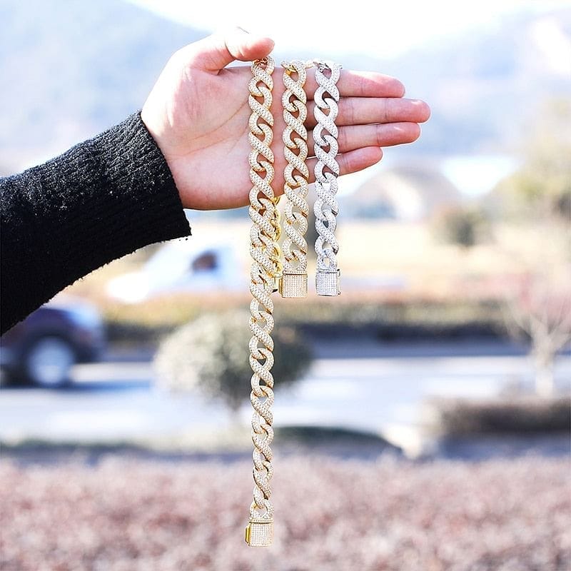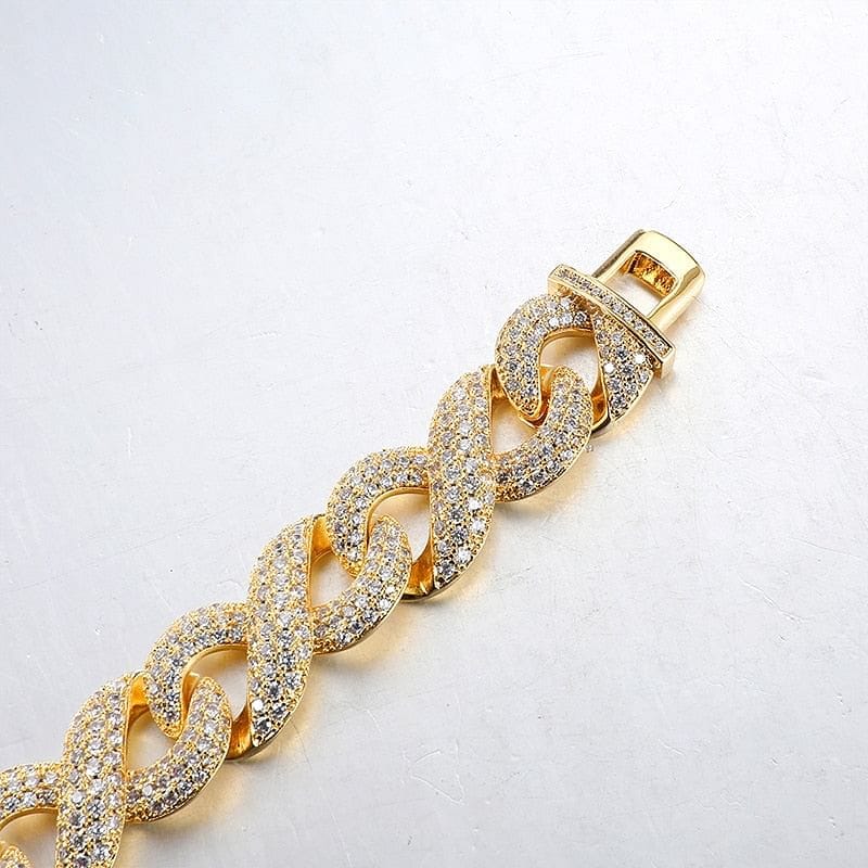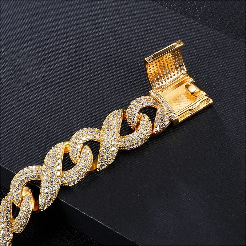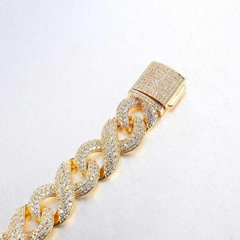 16mm Gold Infinity Prong Cuban Chain plus FREE Bracelet