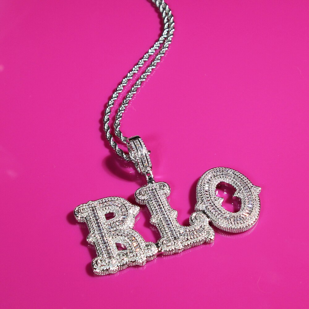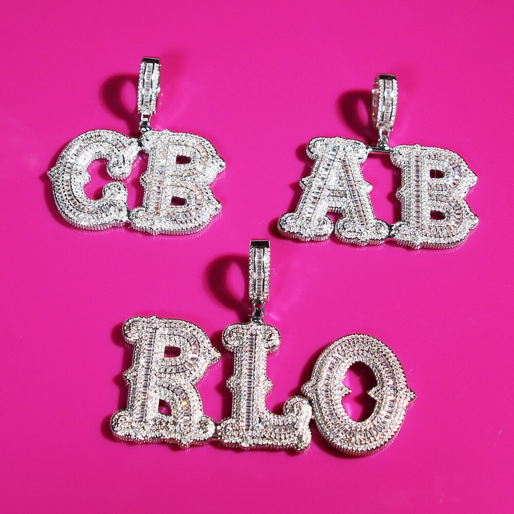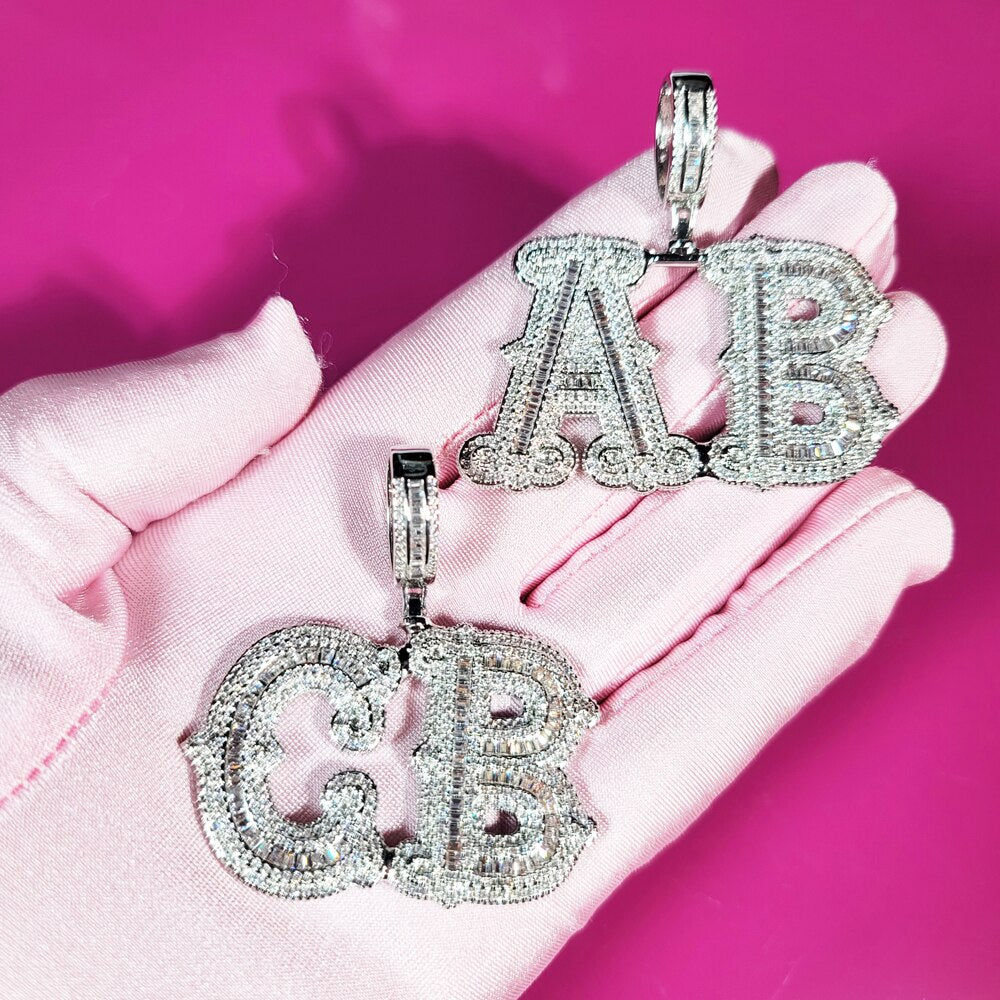 VVS Jewelry Custom Western Font Baguette Letter Pendant Necklace