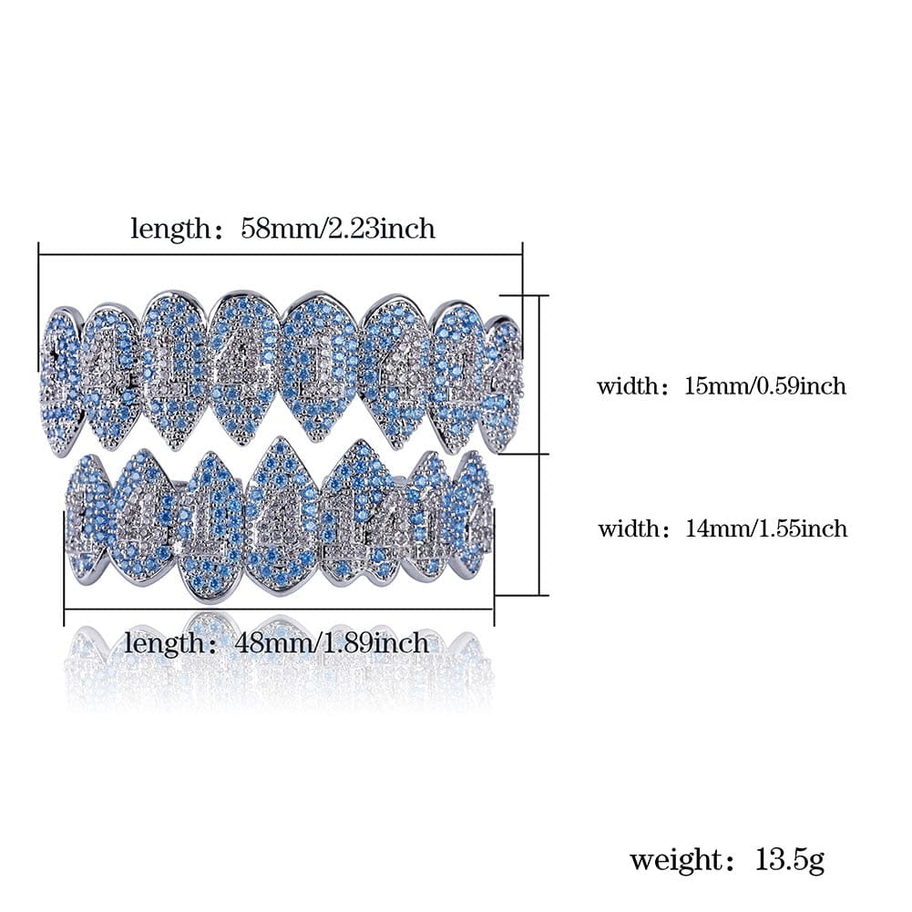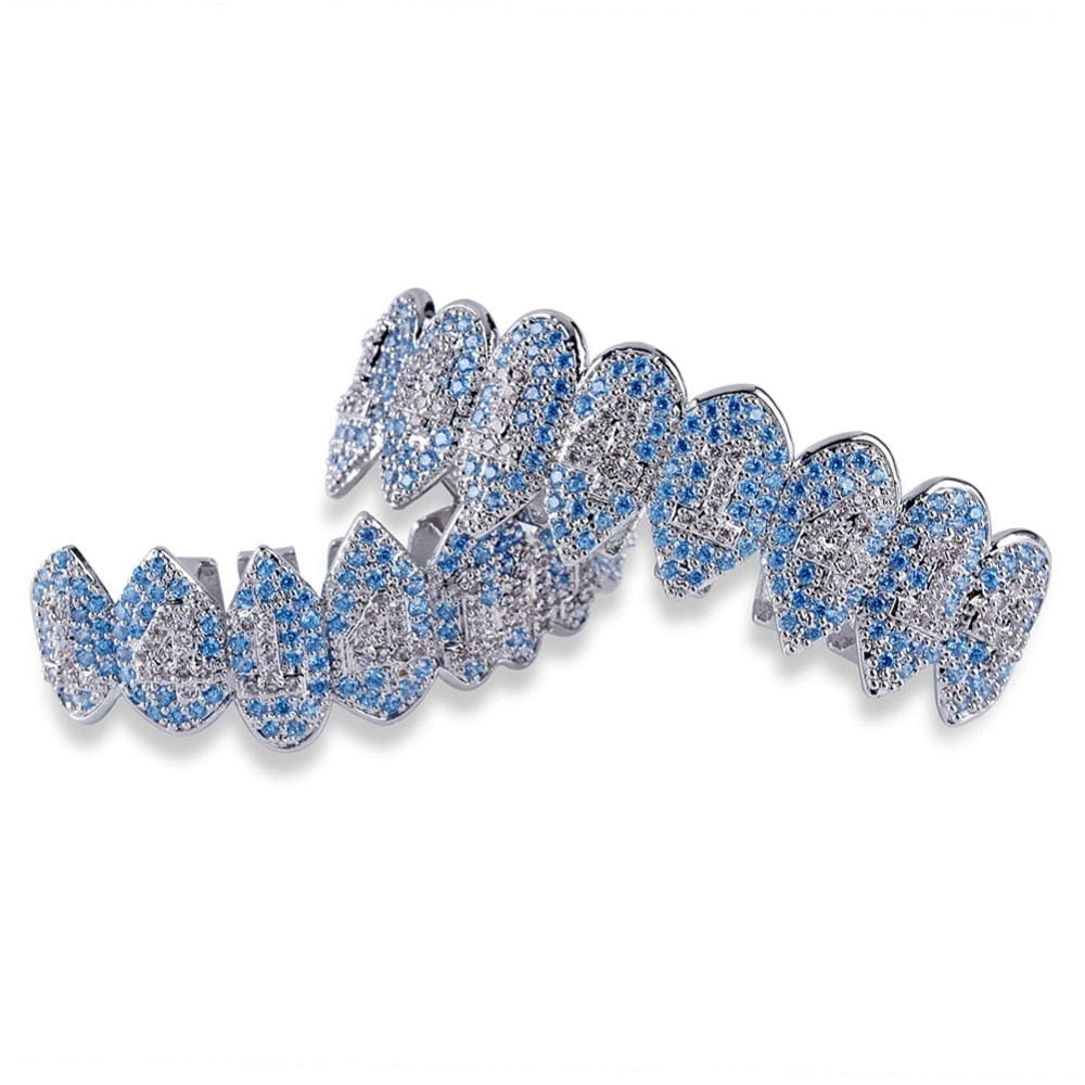 Shine out this unique light blue icy vampire grillz glistening in hand-set stones.