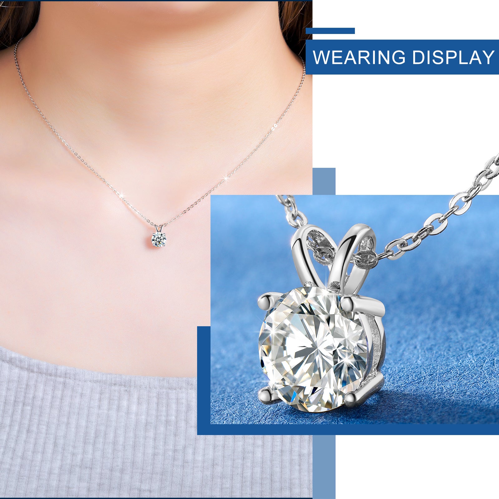 VVS 925 Sterling Silver Moissanite Solitaire Pendant Necklace