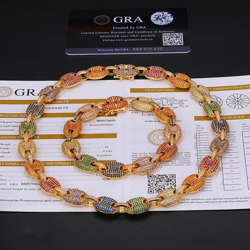 925 Sterling Silver 12mm VVS Moissanite Rainbow G-Link Cuban Chain